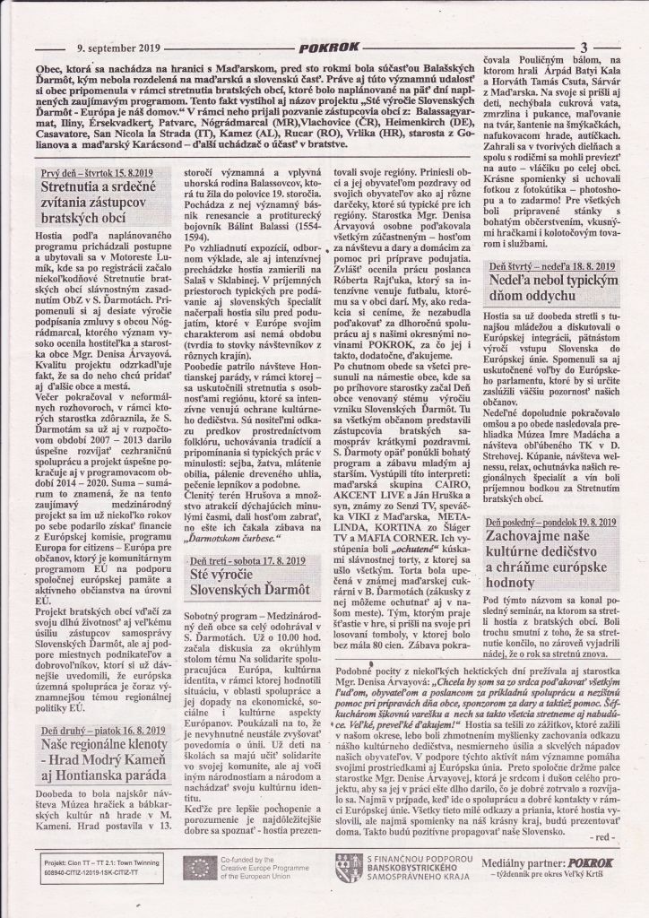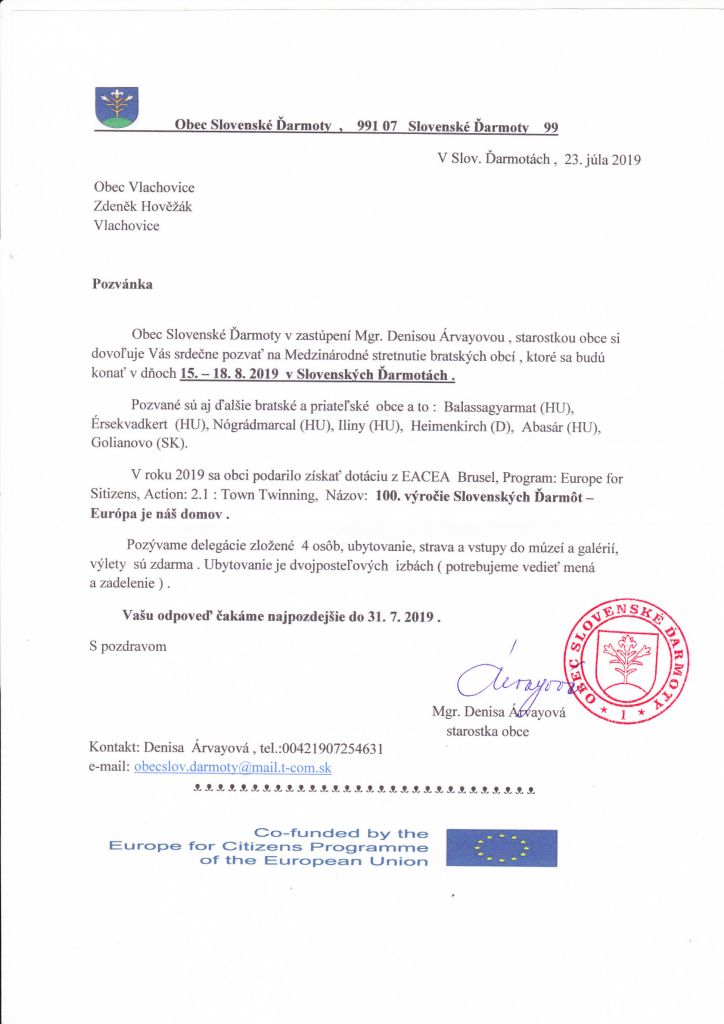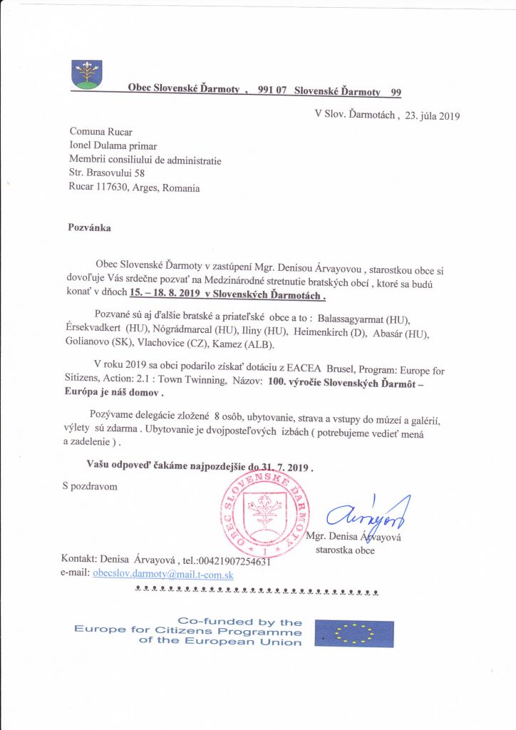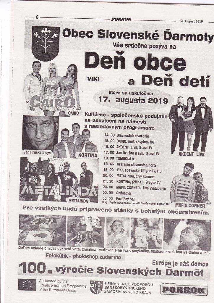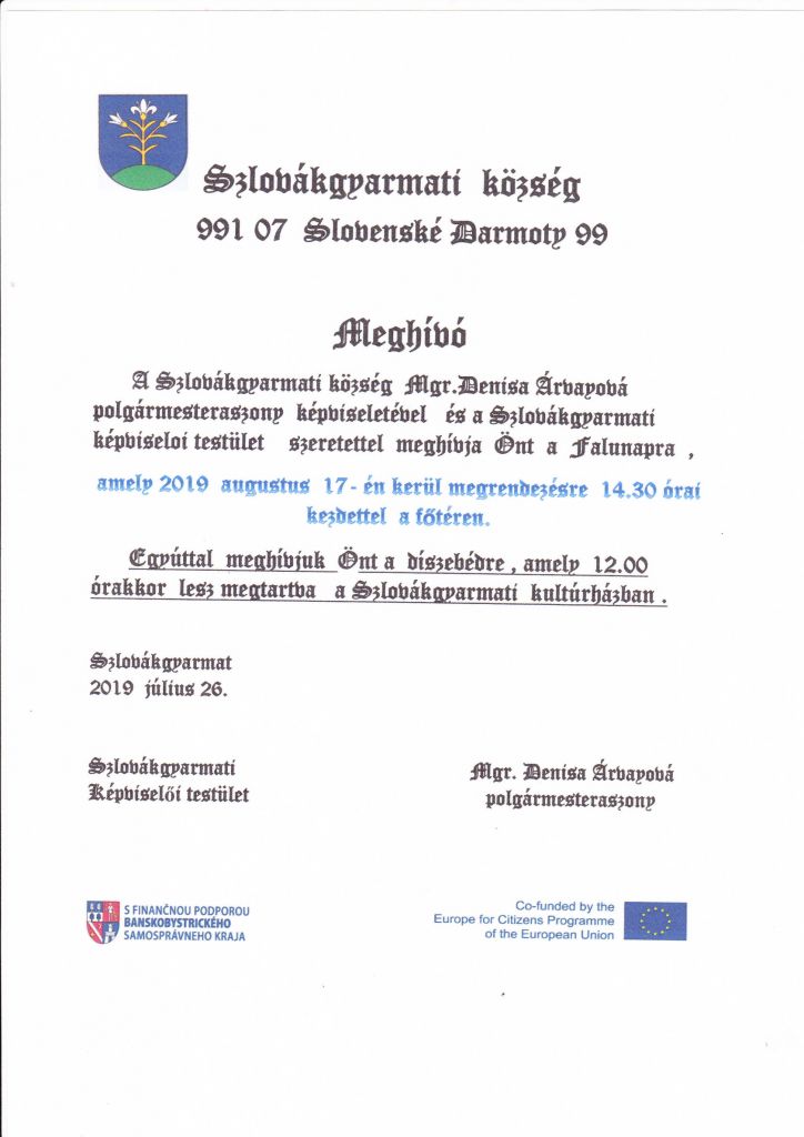 Projekt "100. výročie Slovenských Ďarmôt-Európa je náš domov" bol financovaný prostredníctvom EÚ v rámci programu "Európa pre občanov"