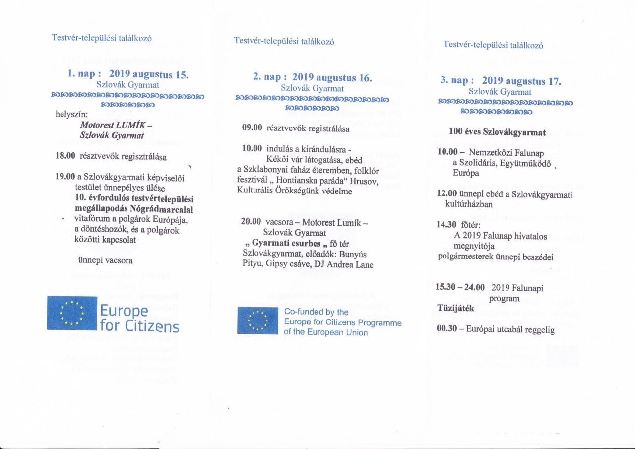 A "100 éves Szlovákgyarmat-Európa a mi hazánk" projektet az EU finanszírozta az "Európa a polgárokért" program keretében.
